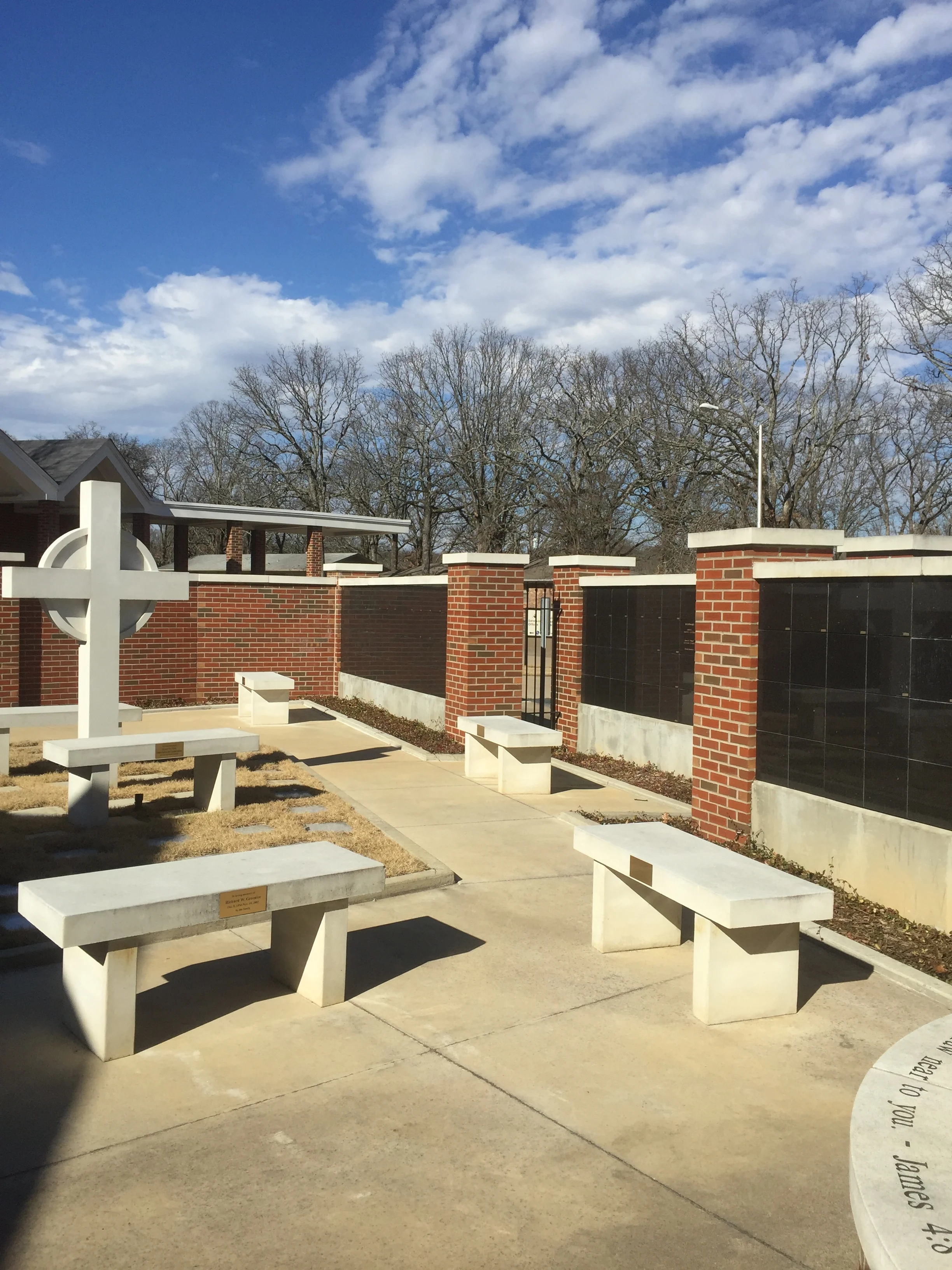 The Columbarium Garden is located at 1922 Topf Road in North Little Rock, Arkansas, on the grounds of Lakewood United Methodist Church in the beautiful, historic Lakewoood neighborhood.